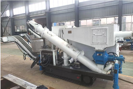 分離機具有結構合理緊湊,操作簡單,板鏈輸送機可180°扇面自由定位旋轉、鏈速0-500mm/s可調,螺旋脫水輸送機0-100r/min可調、脫水效果好,具有液壓履帶行走功能,因此該裝備移動方便。